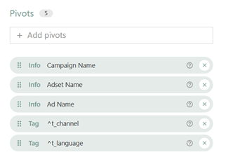 EXAMPLE: For Meta, we may want to see the Campaign Name, the Adset Name, and the Ad name, the Channel Tag (if it was created in the portfolio), and the Language tag (if it was created in the portfolio)